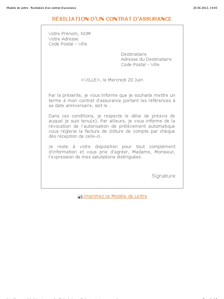 Modele Lettre De Résiliation Assurance - Photo Lettre De Resiliation Orange Fibre Modele Lettre Resume Examples Resume Template - Lettre de résiliation après la destruction du véhicule.. Voici un modèle de lettre gratuit dont le sujet est lettre de résiliation contrat assurance vie. lettre de résiliation la rédaction d'une lettre de résiliation sera nécessaire si vous souhaitez mettre un terme à un contrat d'assurance ou à un abonnement téléphonique. Modèle de lettre pour résilier l'assurance habitation. Modèles de lettres résiliation assurance (assurances). Lettres types de résiliation d'un contrat d'assurance habitation.